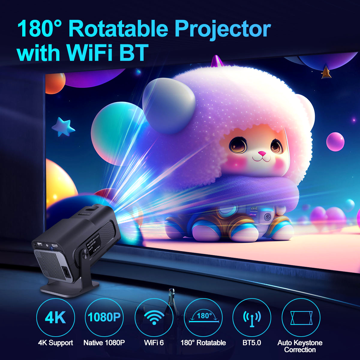 Perfect for bedrooms, living rooms, camping, or business presentations, this projector adapts to any environment. Enjoy large-screen projection anywhere and immerse yourself in a personal cinematic experience.