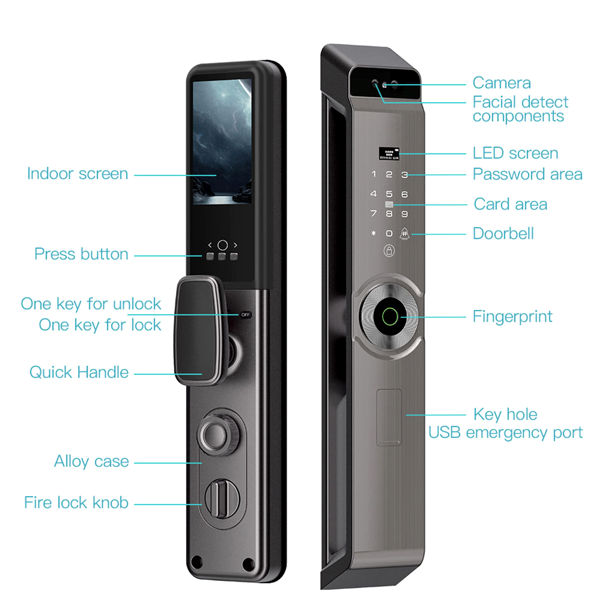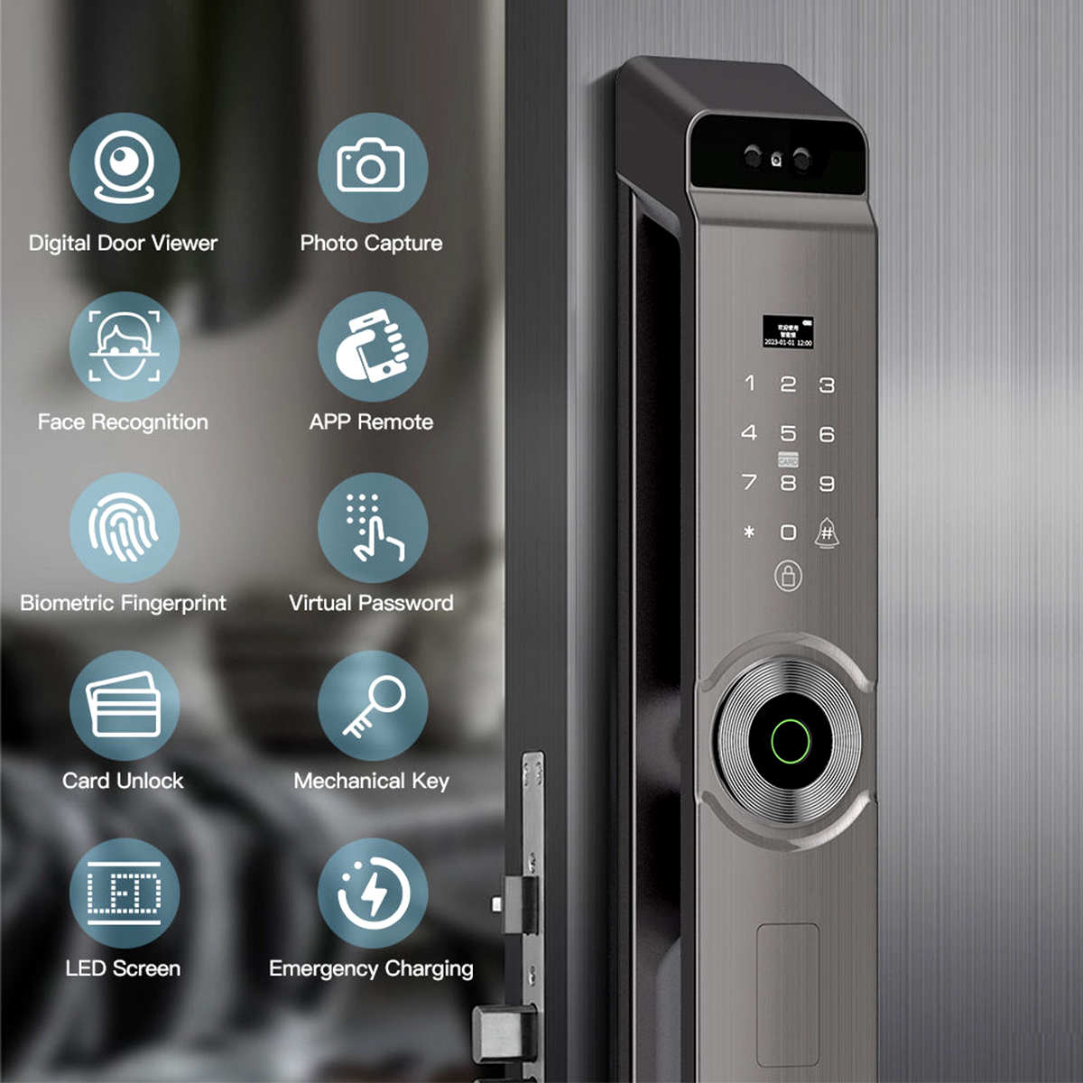 The Multi-Functional Smart Door Lock supports multiple unlocking methods, including facial recognition, palm vein recognition, fingerprint scanning, password entry, card access, and mechanical key. Whether for everyday convenience or managing household members, it provides versatile access options for all scenarios.