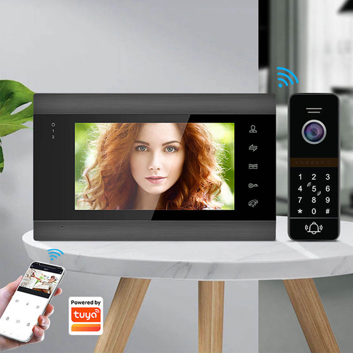 Experience a smarter way to manage your home with this wired video doorbell, featuring a 7-inch HD color display and Tuya smart intercom functionality. Ensure security and convenience at your doorstep with ease.