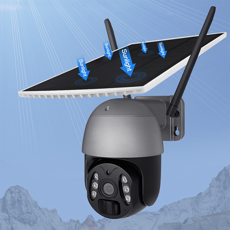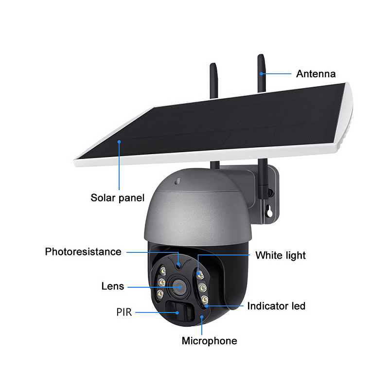 This waterproof wireless PTZ camera features a high-performance 2-megapixel CMOS image sensor, integrated with intelligent detection technology and an efficient solar-powered system. Designed for both indoor and outdoor use, it delivers clear imaging, wide coverage, and reliable all-day surveillance. With wireless connectivity and continuous solar charging, it ensures a stable and eco-friendly security solution.